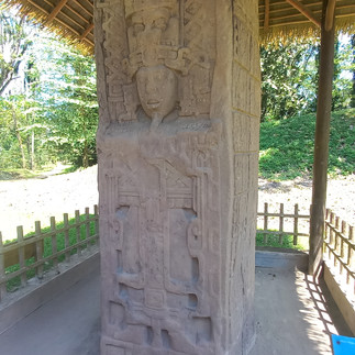 Liebe Leser*innen, heute nehme ich euch den Tag über mit nach Quirigua bis über die Grenze nach Copán in Honduras. Dieses Mal möchte ich euch "notizenhaft" locker berichten und euch dabei einen kleinen Einblick in meine Notizen schenken, die sich im Laufe des Tages angesammelt haben. [...] Lecker gefrühstückt & gestärkt für den Tag sitzen wir nun im Schatten eines Sonnenschirmes und schauen dabei zu, wie unser Fahrer Luis die Gepäckstücke auf dem Dach sichert. Heute ist es nach langer Zeit mal wieder sonnig und es sind so gut wie gar keine Wolken am Himmel zu sehen. Obwohl wir erst 09:15 Uhr haben, sind es schon 28°C! [...] Schnell eingestiegen, Wasser für den Tag aufgefüllt und los geht's in Richtung Quirigua. Das bedeutet für uns es geht grob wieder in die Richtung des Departamento Petén. Die archäologische Stätte liegt neben einem Dorf, in dem viele Bananenplantagenarbeiter wohnen. Sie sprechen die Xinca-Sprache aus Zentralamerika, die überhaupt nicht in Beziehung mit dem mesoamerikanischen Spanisch steht. Zudem haben diese diverse Kulturelemente aus Südamerika mit nach Quirigua gebracht (z.B. essen sie keinen Mais sondern eher Yuca/Maniok). Bananen Die Bananen, die dort aus Quirigua kommen, werden abgeholt und anschließend nach Puerto Barrios gebracht, damit sie von dort aus wiederum nach Europa gebracht werden können. Bei den Bananenplantagen handelt es sich um Monokulturen, die sehr anfällig für Schädlinge, wie z.B. die Bananenspinnen sind. Motagua Fluss Durch vergangenen Hurricanes ist der Fluss Motagua, den wir soeben überquert haben, dramatisch angestiegen. Das gesamte Zentrum befand sich unter einer meterhohen Schlammschicht. Auch die archäologische Stätte hat darunter sehr gelitten. Nun folgen Vorab-Informationen zu Quirigua. archäologische Stätte Quirigua Geschichte Quirigua wurde damals durch Copán gegründet und war wahrscheinlich schon früh besiedelt, jedoch sind die ganz frühen Nachweise nicht mehr zu finden. In Quirigua stehen die größten Stelen des gesamten Maya Gebiets. Sie dienten dem damaligen Herrscher oder vielmehr König K'ak'tiliw als Selbstdarstellung. Forschungsgeschichte Es gibt in Quirigua eine Stele, die mehrmals umgekippt ist. Es gab mehrere erfolglose Versuche sie wieder aufzustellen. Sir Alfred Percival Maudslay, ein britischer Gesandter beschäftigte sich damals mit verschiedenen Vogelarten, der Archäologie. Außerdem war er ein sehr guter Fotograf und stellte Abgüsse von den Stelen her. Diese bestanden aus mit Latex verstärkten Papier. Später brachte er sie ins britische Museum, die dort noch immer zu sehen sind. Eigentlich haben sich alle Forscher, die jemals in Quirigua waren, hauptsächlich um die Stelen gekümmert, da diese für den Ort sehr ausschlaggebend sind. Die Siedlungsarchäologie wurde erst später erforscht. Bedeutung Quiriguas Der Ort Quirigua erlangte eine große Bedeutung aufgrund von den vorhandenen Ressourcen. Unter anderem gab es ein großes Vorkommen von Jade, sowie Obsidian am Ende des Motaguas Tals. So ist das Gebiet Quiriguas zu den Zeiten von K'ak'tiliw (großer Mann von Quirigua) dank der Handelswege explosionsartig gewachsen. Gerade fahren wir auf den Parkplatz der archäologischen Stätte. Auf geht's in den parque arqueológico! Mittlerweile haben wir übrigens 33°C.